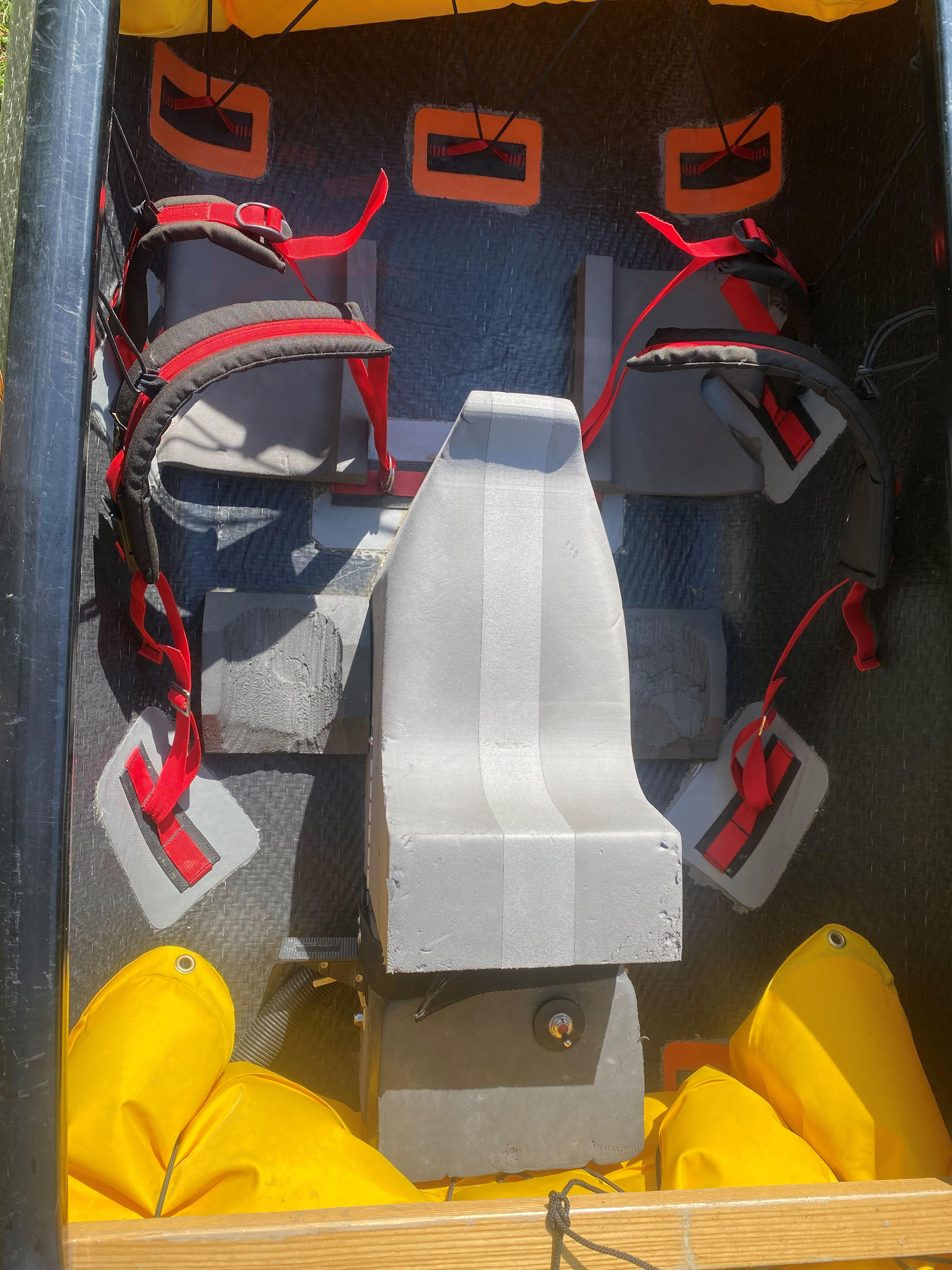 Occasion Conoe, 5 Jahre alt, 2. Hand – übliche Gebrauchsspuren, keine Dellen oder Löcher, sehr guter Zustand. Komplett gefittet, Auftriebskörper, Sattel, Fussstützen, Knieriemen, Lenzpumpe mit Akku und Ladegerät. CHF 1'600.-